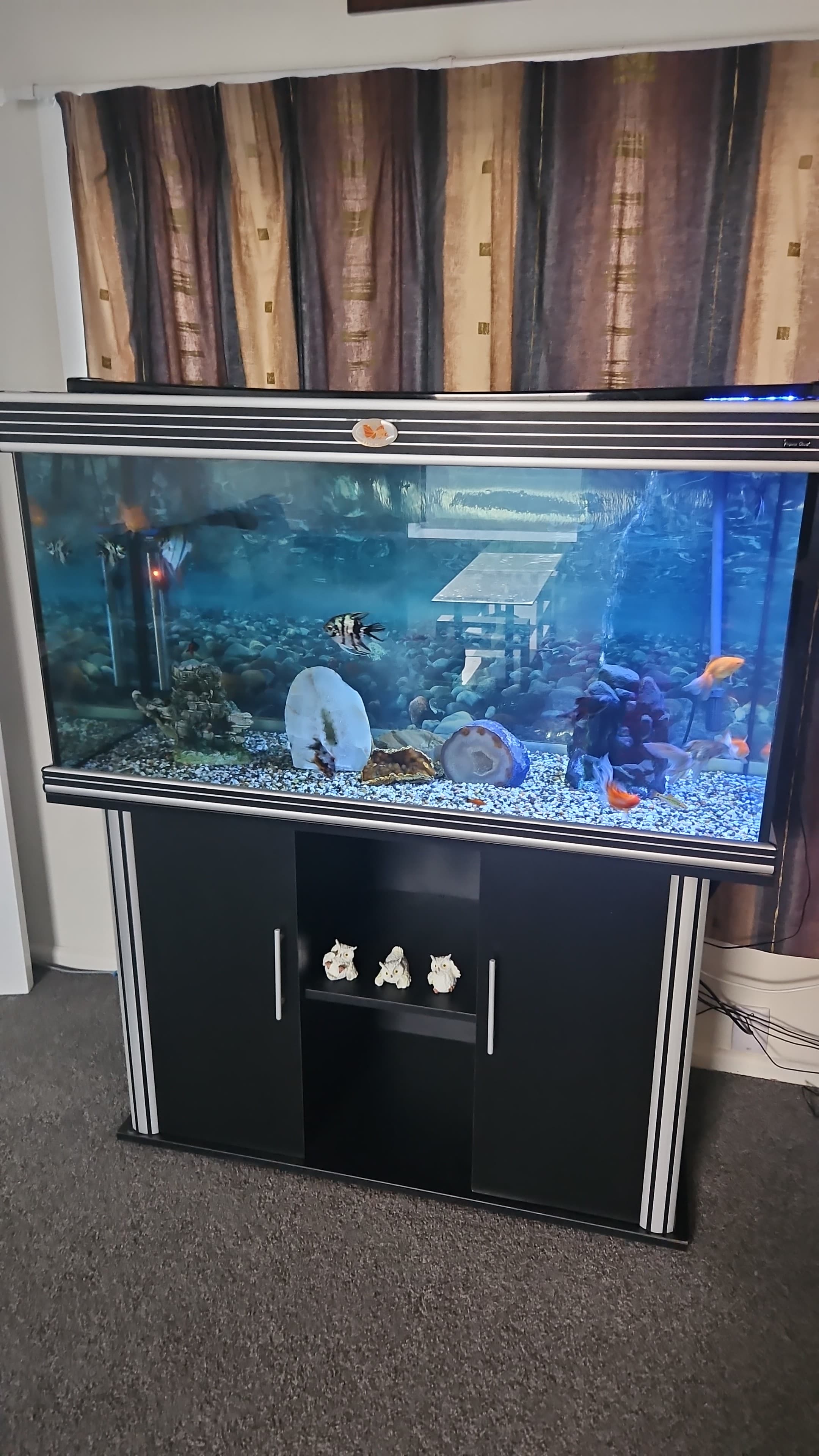 The curved front face adds a modern twist to the otherwise classic rectangular aquariums.